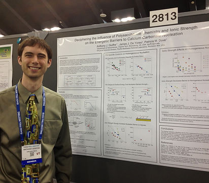 Calcified skeletons are produced within complex assemblages of proteins and polysaccharides whose roles in mineralization are not well understood. Researchers have long postulated that living organisms utilize the macromolecules of organic matrices to actively guide the formation of crystal structures. The timing and placement of the subsequent minerals that form are most easily controlled during nucleation; however, a physical and chemical picture of how organic functional group chemistry influences the initial stages of nucleation is not yet established. These processes are further complicated by the realization that carbonate biominerals can form by an amorphous to crystalline transformation process, which has prompted the question of how chemical signatures are recorded during mineralization. Investigations of mineralization processes such as the kinetics of nucleation and the transformation amorphous calcium carbonate (ACC) to crystalline products are critical to building a better understanding of biomineral formation. Only from that fundamental basis can one begin to decipher changes in climate and seawater chemistry over geologic time and by recent antrophogenic effects.